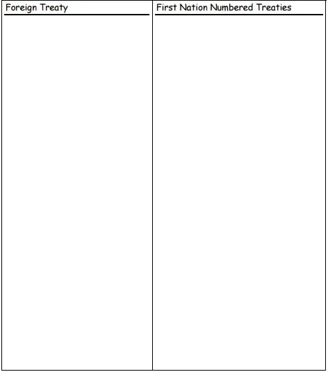 Objectives: Students will be able to compare and contrast their foreign treaty with that of the spirit and intent of treaty 4 or 6. Students will begin to understand that First Nations had little choice but to surrender their lands and sign treaties.